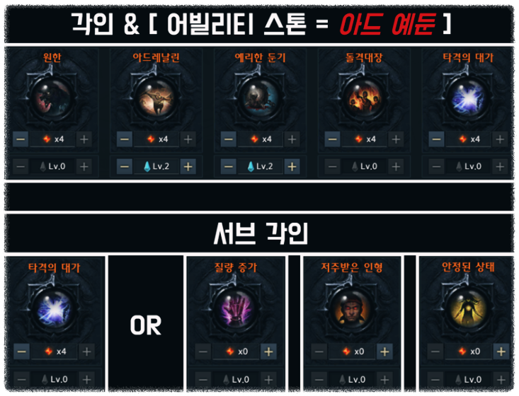 - 스킬트리 /트포 / 룬/ 보석 배치/ 보석 업글 우선순위