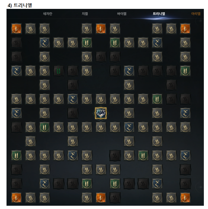 └ 주황색 노드 가는 길목에 본인 스킬 레벨 상황 비교해가며 8렙, 12렙 될 것 같으면 파란색 노드 찍기