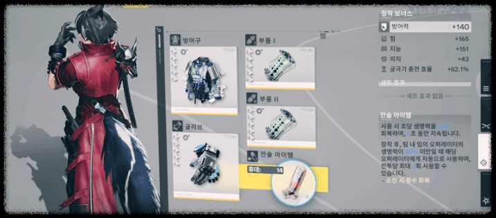 낙조 경갑 + 생체 보조 견갑 + 식양의 숨결 충전 코어 X 2