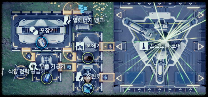 굳이 순서를 따지자면, 본인 오리지늄 생산량이 90을 넘겼을 때 배터리공장을 지어주고 생산량이 150을 넘겼을 때 식양 장비 공장을 지어준 다음에 생산량이 240을 넘겼을 때 배터리 공장 지웠던 부분을 복구해주면 순서입니다.