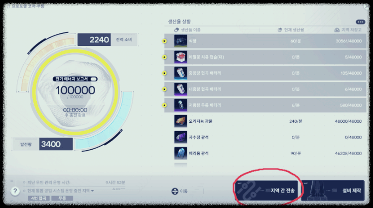 이 남는 오리지늄을 지역 간 전송을 이용해 무릉으로 땡겨올 것입니다.
